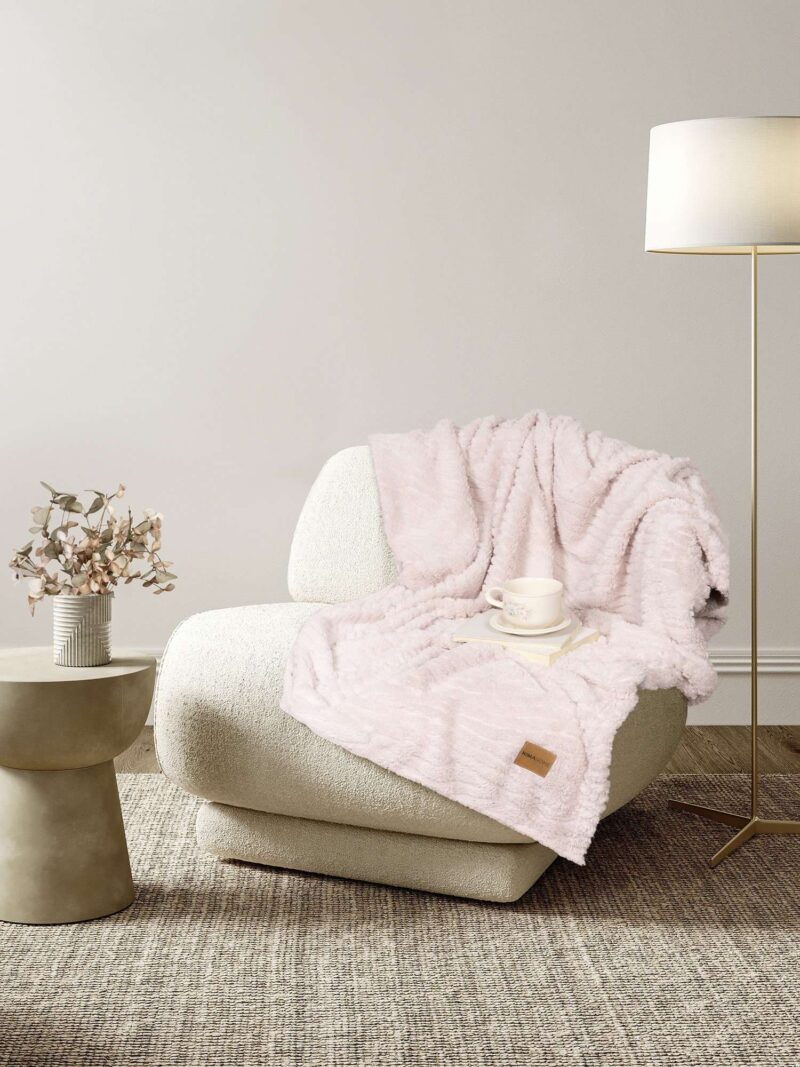 Η κουβέρτα καναπέ Serenus Pink, έχει ανάγλυφο κυματιστό μοτίβο που προσδίδει μια ξεχωριστή αίσθηση βάθους και κίνησης, ενώ το απαλό ροζ χρώμα της μέντας δημιουργεί μια ατμόσφαιρα ρομαντισμού και ηρεμίας. Θα σας συντροφεύσει τις κρύες χεμωνιάτικες νύχτες καθώς θα χαλαρώνετε στον αναπαυτικό καναπέ σας. Η εξαιρετικά απαλή υφή της και η ζεστασιά της την καθιστούν απαραίτητη όλους τους φθινοπωρινούς και χειμωνιάτικους μήνες του έτους. Ιδανική για ένα όμορφο και πρακτικό δώρο σε φίλους.