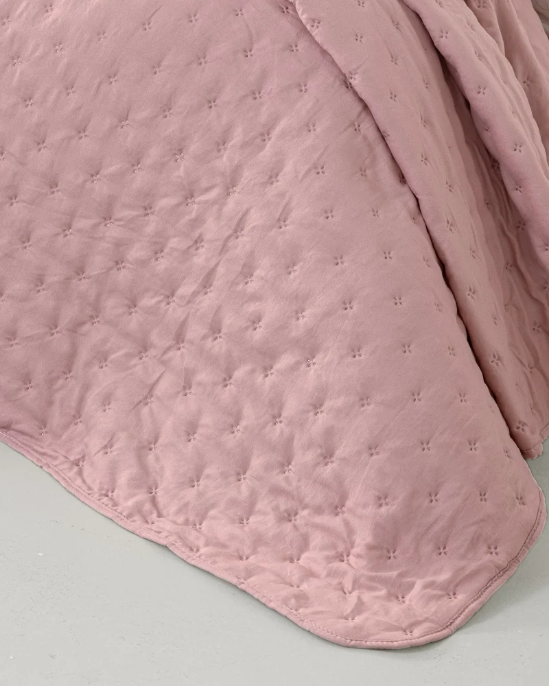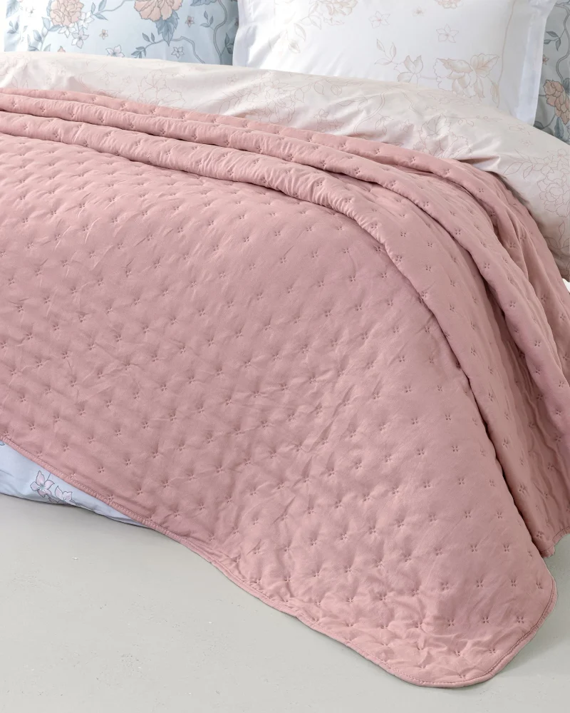 Κουβερλί κεντητό σε ροζ χρώμα με μοντέρνο σχέδιο. Κατασκευασμένο από 100% washed microfiber 90 γρ./μ² με γέμιση polyester 150 γρ./μ², που το καθιστά απαλό, ζεστό και άνετο στη χρήση. Ιδανικό για να ανανεώσει το υπνοδωμάτιο με στυλ και άνεση.