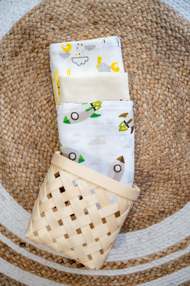 Οι μουσελίνες αποτελούν αναπόσπαστο κομμάτι του εξοπλισμού του μωρού! Είναι ένας σταθερός σύντροφος για το μωρό σας, είτε στο σπίτι είτε στο δρόμο. Για απαλές αγκαλιές τις πρώτες εβδομάδες και μήνες, σαν ελαφριά καλοκαιρινή κουβέρτα ακόμη και ως προστασία από τον ήλιο στο καρότσι. Μπορούν επίσης να χρησιμοποιηθούν και από νήπια ή μεγαλύτερα παιδιά που τους αρέσουν να τις αγκαλιάζουν και να παίζουν με αυτές στον ύπνο ή να τις χρησιμοποιούν για να τυλίξουν τις κούκλες τους.