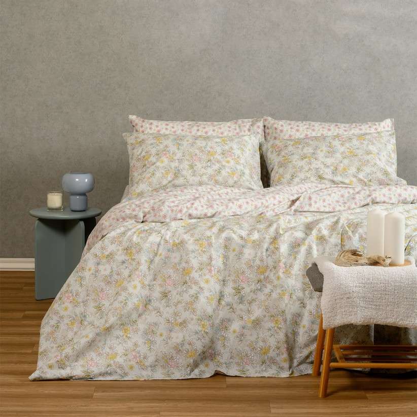 Παπλωματοθήκη διπλής όψεως Chloe με σχέδιο floral από τη σειρά Casual Line της Melinen! Κατασκευασμένη από 50% βαμβακερό – 50% πολυεστερικό ύφασμα 144 κλωστών, έχει απαλή υφή, λείο φινίρισμα και είναι πολύ εύκολη στο σιδέρωμα. Διατίθεται σε δυο αποχρώσεις και πωλείται σε υφασμάτινη συσκευασία – πουγκί.