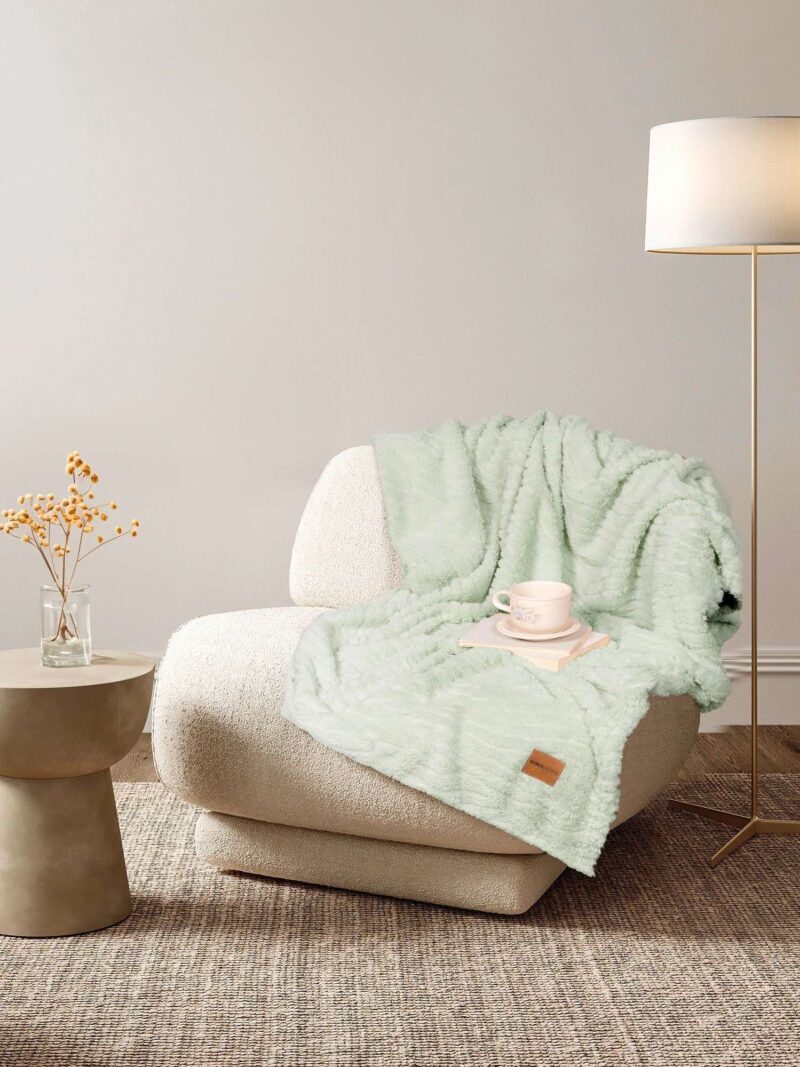 Η κουβέρτα καναπέ Serenus Mint, έχει ανάγλυφο κυματιστό μοτίβο που προσδίδει μια ξεχωριστή αίσθηση βάθους και κίνησης, ενώ το απαλό χρώμα της μέντας δημιουργεί μια ατμόσφαιρα ηρεμίας. Θα σας συντροφεύσει τις κρύες χεμωνιάτικες νύχτες καθώς θα χαλαρώνετε στον αναπαυτικό καναπέ σας. Η εξαιρετικά απαλή υφή της και η ζεστασιά της την καθιστούν απαραίτητη όλους τους φθινοπωρινούς και χειμωνιάτικους μήνες του έτους. Ιδανική για ένα όμορφο και πρακτικό δώρο σε φίλους.