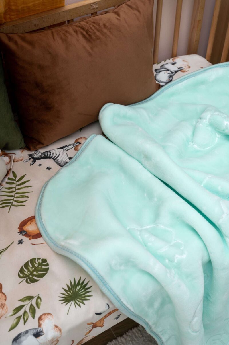 Ανάγλυφη βρεφική κουβέρτα βελουτέ, απαλή και ζεστή με γούνινη υφή και ανεξίτηλα χαρούμενα χρώματα διαστάσεων 110X140 cm, με βάρος 1.100 gr. Ιδανικό δώρο για τη κούνια-κρεβατάκι του μωρού. -Συσκευασία κουτί πολυτελείας.