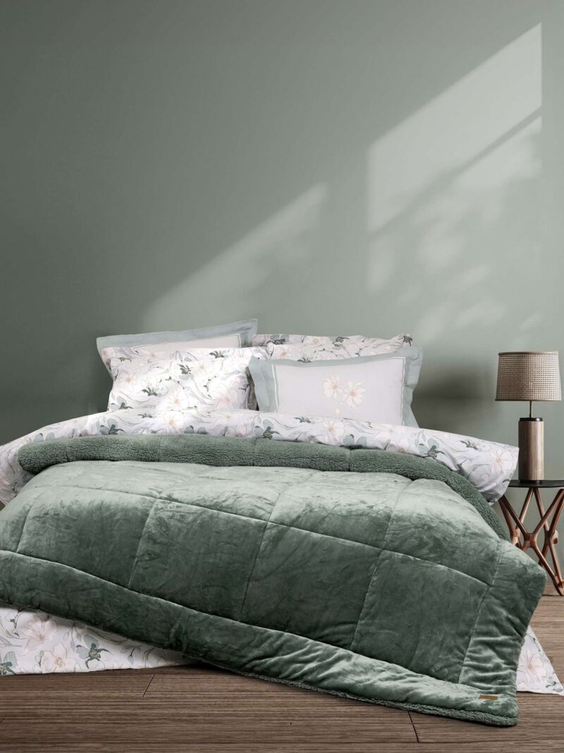 Το Κουβερτοπάπλωμα Cira Dark Green συνδυάζει τη ζεστασιά και την πολυτέλεια με μια μοντέρνα αίσθηση. Η πάνω πλευρά του είναι κατασκευασμένη από μονόχρωμο flannel, προσφέροντας απαλή και πολυτελή αίσθηση, ενώ η κάτω πλευρά είναι καλυμμένη με sherpa, παρέχοντας εξαιρετική θερμότητα και άνεση. Το σκούρο πράσινο χρώμα του προσθέτει χαρακτήρα στο υπνοδωμάτιό σας και συνδυάζεται όμορφα με γήινα χρώματα, δίνοντας ένα άψογο αισθητικό αποτέλεσμα. Το κουβερτοπάπλωμα αυτό είναι ιδανικό για τις πιο κρύες νύχτες, καθώς η πλούσια βελουτέ υφή του και η αφράτη και ζεστή αίσθηση της sherpa, εξασφαλίζoυν ένα πραγματικό χουχούλιασμα στο κρεβάτι σας.