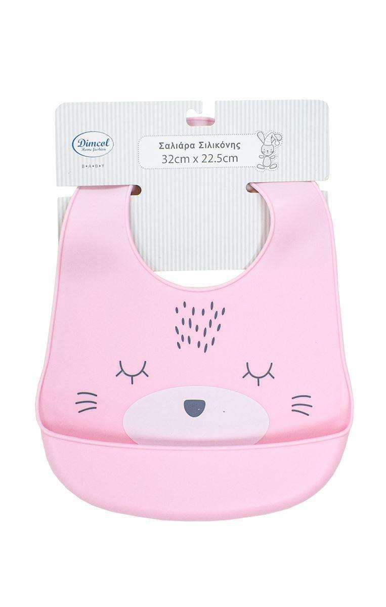 Σαλιάρα Σιλικόνης bebe με Κουμπί & Τσέπη Pink