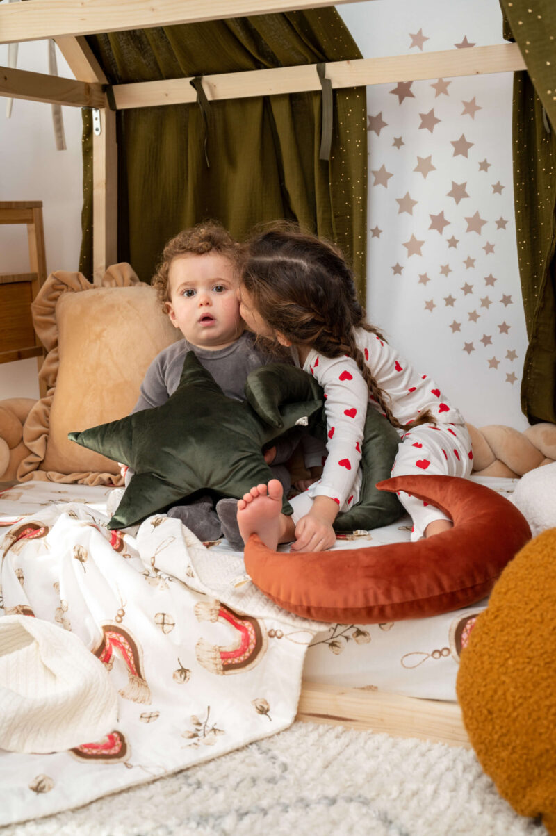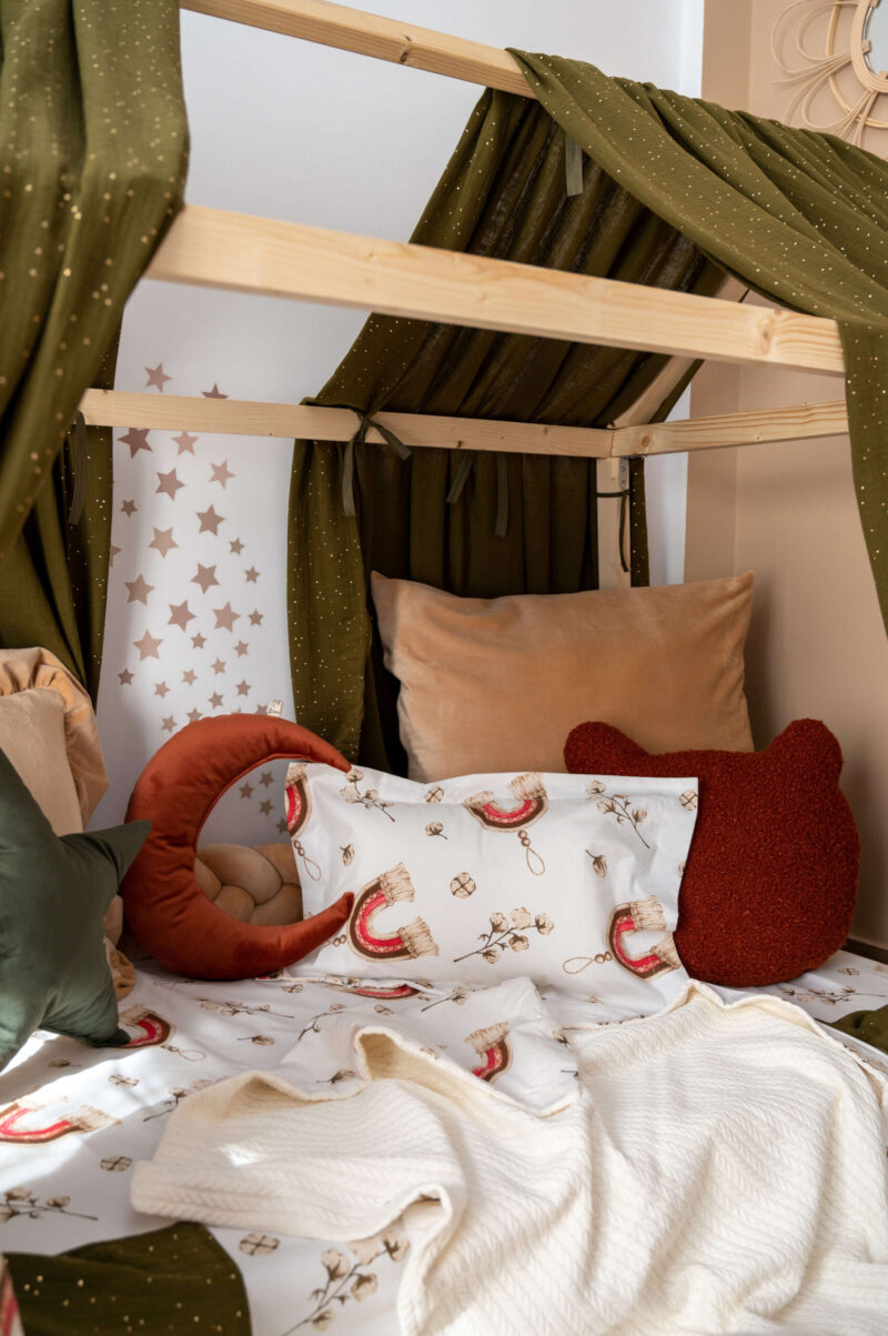 Με υψηλής ποιότητας βαμβακερά υφάσματα φιλικά προς το περιβάλλον. Είναι αναπνεύσιμα, αντί-αλλεργικά και, πάνω απ ‘όλα, δημιουργούν γαλήνια όνειρα στα μικρά σας. Όλα αυτά γιατί ο καλός ύπνος είναι η βάση για την σωστή ανάπτυξη του θησαυρού σας.