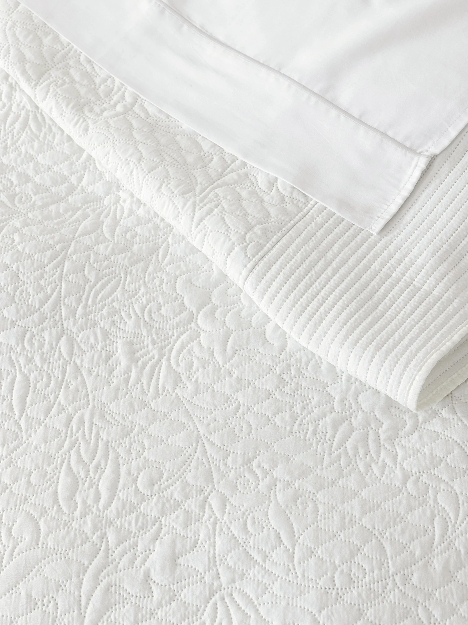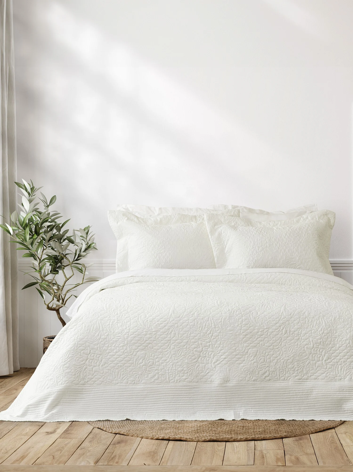 Το σετ κουβερλί Always Off White θα ντύσει το κρεβάτι σας με απαλότητα, κομψότητα και μια αίσθηση ζεστασιάς. Ένα διαχρονικό σετ φιλοτεχνημένο με ανάγλυφο μοτίβο με λουλούδια, που δημιουργεί μια ενδιαφέρουσα υφή και προσδίδει μια πινελιά ρομαντισμού και κομψότητας. Περιμετρικά έχει μια γραμμική μπορντούρα, δίνοντας ένα εντυπωσιακό αποτέλεσμα που ταιριάζει με πολλά στυλ διακόσμησης. Οι μαξιλαροθήκες του είναι Oxford τεσσάρων πλευρών και δείχνουν πλούσιες και αφράτες στο κρεβάτι. Το εκρού χρώμα του, είναι μια κλασική και διαχρονική επιλογή που προσφέρει αίσθηση καθαριότητας, φωτεινότητας και ηρεμίας. Μπορεί να γίνει ένα εξαιρετικό δώρο γάμου ή ένα δώρο για το σπίτι σας.