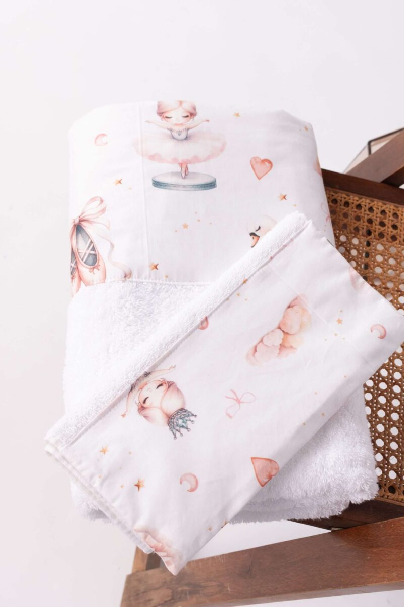 To σετ περιλαμβάνει πετσέτα μπάνιου 0,70*1,40  & πετσετούλα χεριών 0,30*0,50.  Τα πιο όμορφα σετ για τα μικρά μας ανθρωπάκια. Απαραίτητα αξεσουάρ για το μπανάκι και την καθημερινή ρουτίνα του παιδιού μας.