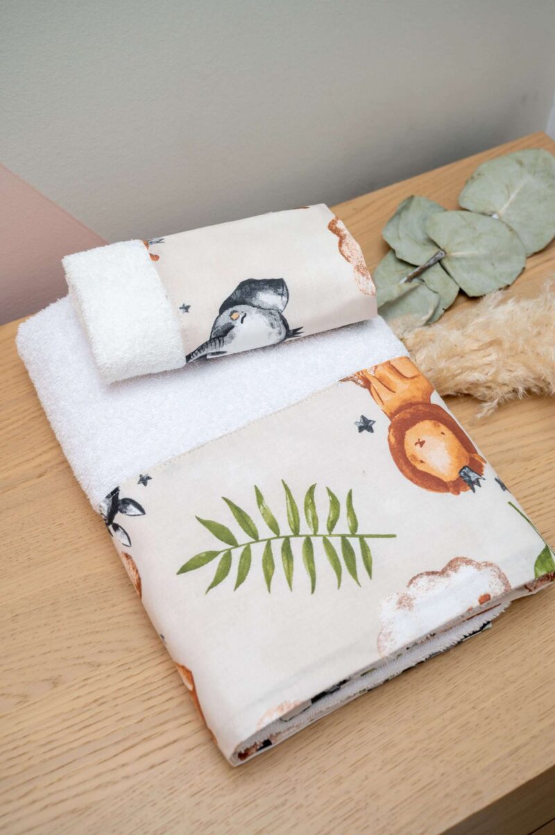To σετ περιλαμβάνει πετσέτα μπάνιου 0,70*1,40 & πετσετούλα χεριών 0,30*0,50. Τα πιο όμορφα σετ για τα μικρά μας ανθρωπάκια. Απαραίτητα αξεσουάρ για το μπανάκι και την καθημερινή ρουτίνα του παιδιού μας.