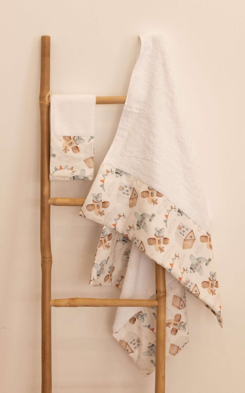 To σετ περιλαμβάνει πετσέτα μπάνιου 0,70*1,40 & πετσετούλα χεριών 0,30*0,50. Τα πιο όμορφα σετ για τα μικρά μας ανθρωπάκια. Απαραίτητα αξεσουάρ για το μπανάκι και την καθημερινή ρουτίνα του παιδιού μας.