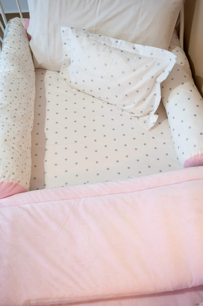 Το σετ λίκνου περιλαμβάνει πανωσέντονο & κατωσέντονο, χωρίς μαξιλαροθήκη. Το σετ κούνιας, το σετ μονό & το σετ ημίδιπλο περιλαμβάνουν κατωσέντονο και μια μαξιλαροθήκη.