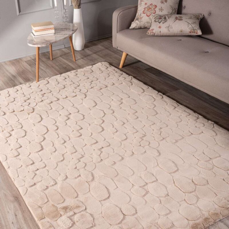 Μοναδικά απαλά γούνινα χαλιά, σε βοτσαλωτό σχέδιο, κατασκευασμένα από 100% συνθετική γούνα. Εξαιρετική απαλή υφή που μιμείται ακριβώς την γούνα κουνελιού. Αναβαθμίζουν την αισθητική του χώρου και διατίθενται σε πέντε παστέλ αρμονικές αποχρώσεις. Δεν γλιστράνε χάρη στην αντιολισθητική επιφάνεια που διαθέτουν. Είναι ελαφριά, εύκολα στη χρήση και μπορούν να τοποθετηθούν σε όλους τους χώρους του σπιτιού.