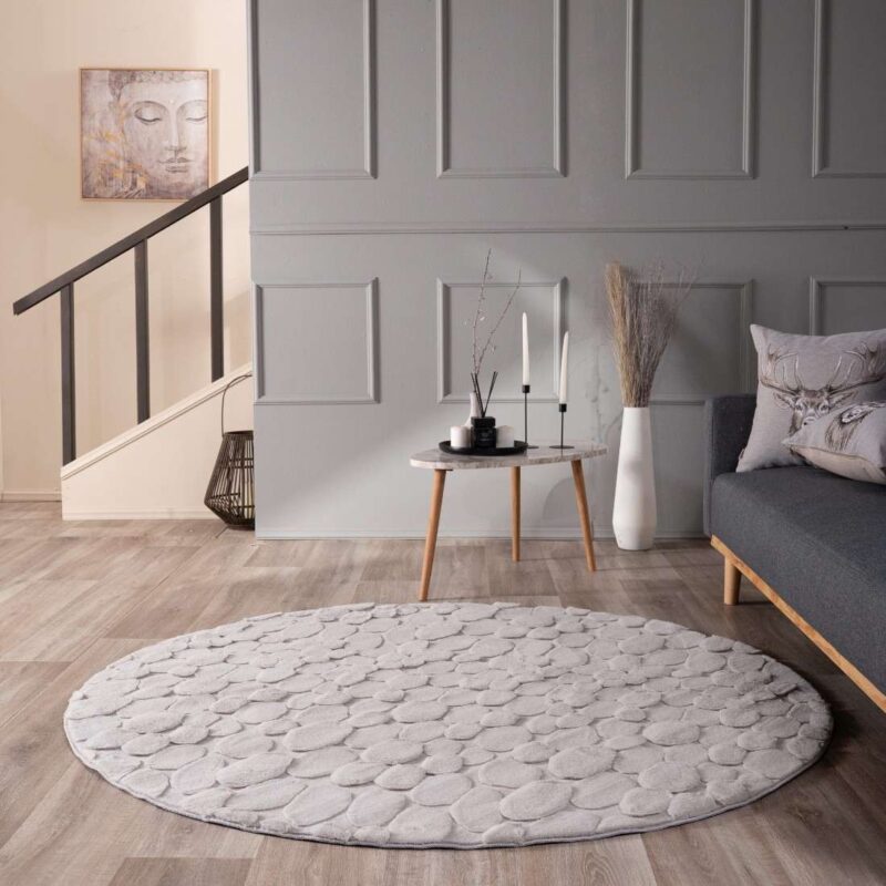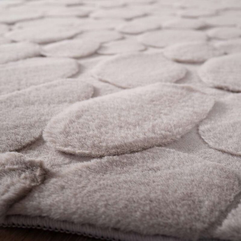 Μοναδικά απαλά γούνινα χαλιά, σε βοτσαλωτό σχέδιο, κατασκευασμένα από 100% συνθετική γούνα. Εξαιρετική απαλή υφή που μιμείται ακριβώς την γούνα κουνελιού. Αναβαθμίζουν την αισθητική του χώρου και διατίθενται σε πέντε παστέλ αρμονικές αποχρώσεις. Δεν γλιστράνε χάρη στην αντιολισθητική επιφάνεια που διαθέτουν. Είναι ελαφριά, εύκολα στη χρήση και μπορούν να τοποθετηθούν σε όλους τους χώρους του σπιτιού.