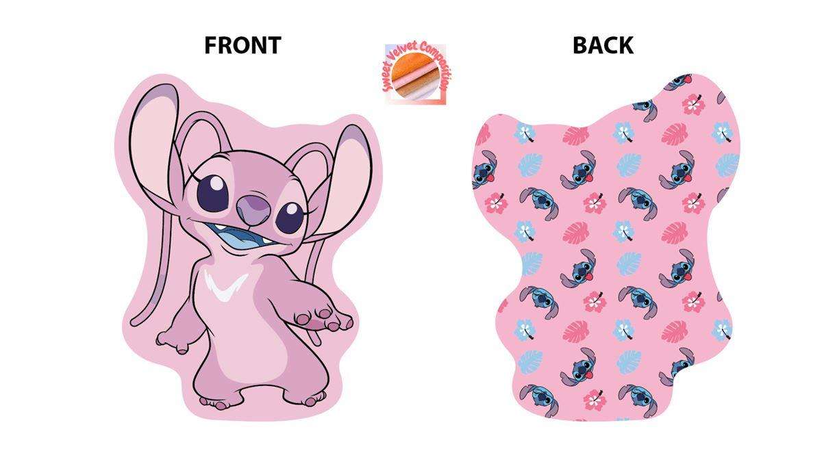 Τρισδιάστατο mini μαξιλαράκι ύψους 20 cm, με σχέδιο ψηφιακής εκτύπωσης σε όλη την επιφάνεια (All Over Print) που απεικονίζει την Angel, την αγαπημένη του Stitch από την σειρά της Disney, Lilo & Stitch. Κατασκευασμένο από 100% Velboa (Faux Fur) ύφασμα, κάτι που το καθιστά πολύ απαλό και μαλακό και προσδίδει βελούδινη υφή.